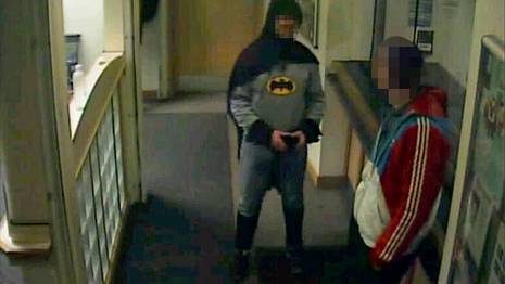 Un hombre vestido de Batman entrega a un delincuente en una comisaría inglesa